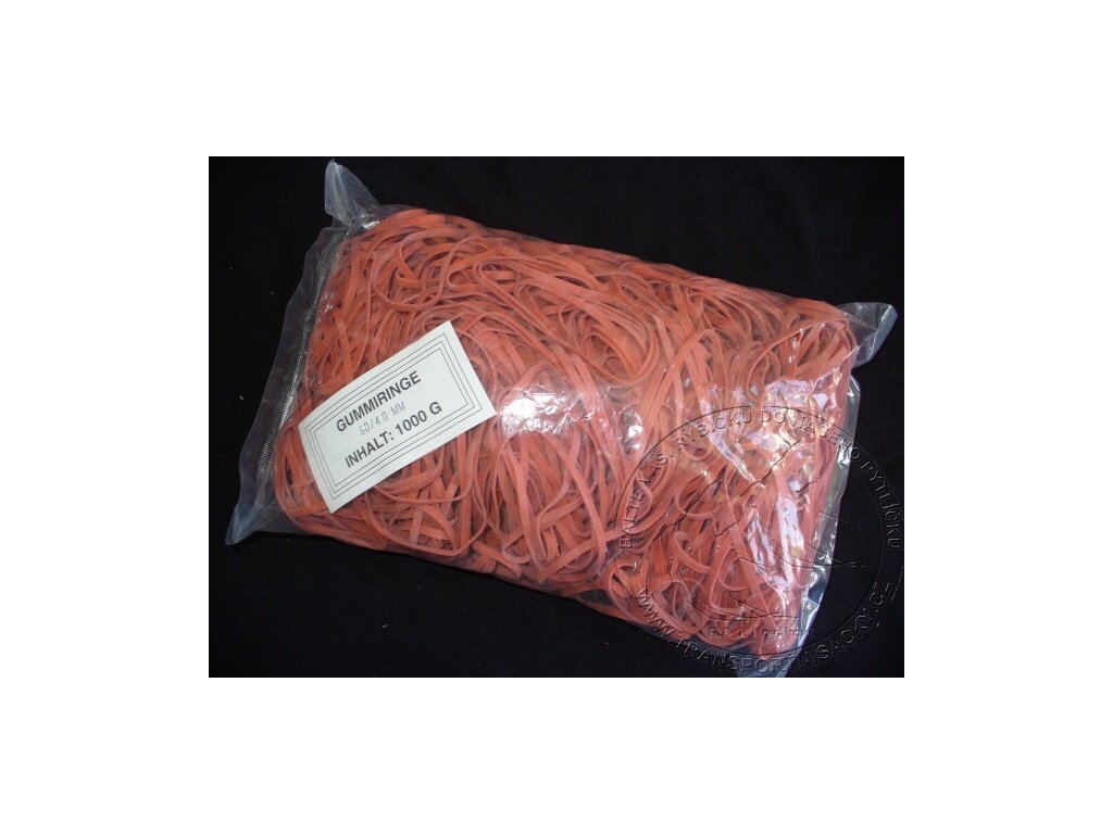 Balení obsahuje 1kg gumiček, velikost gumičky cca 60mm x 3mm.