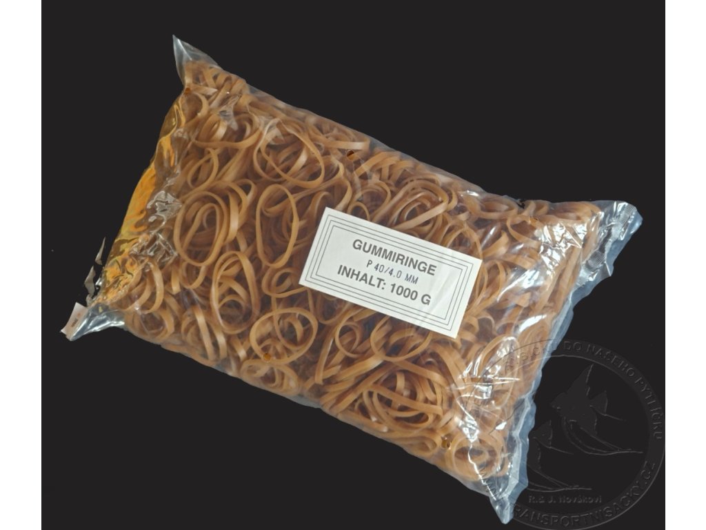 Balení obsahuje 1kg gumiček, velikost gumičky cca 40mm x 4mm