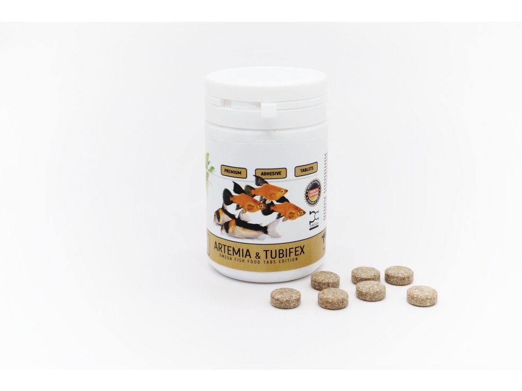 Speciální prémiové tablety pro akvarijní ryby obsahující lyofilizovanou nitěnku a artemii. Tyto tablety lze přilepit na sklo akvária.